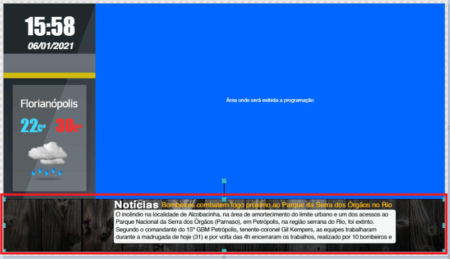 Após criar as imagens para compor a moldura, vá para a aba Conteúdos > Molduras > Creative, dentro do Creative para Molduras clique no ícone do Content Stock e selecione um dos modelos de moldura disponível, neste exemplo utilizarei o modelo Previsão 1 dia.