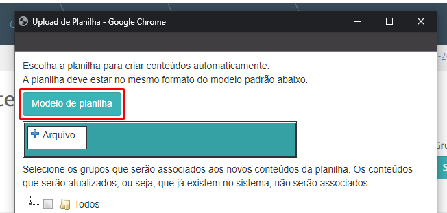 1° passo – Dentro da Editoria, clique no botão “Importar” e na janela que foi aberta clique em “Modelo de Planilha” para fazer o download desta planilha.
