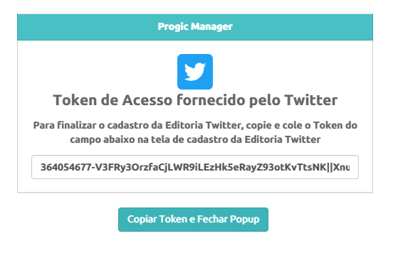 Será gerado um Token. Copie o código com Ctrl+C ou clicando no botão “Copiar Token e Fechar Popup”.