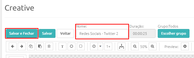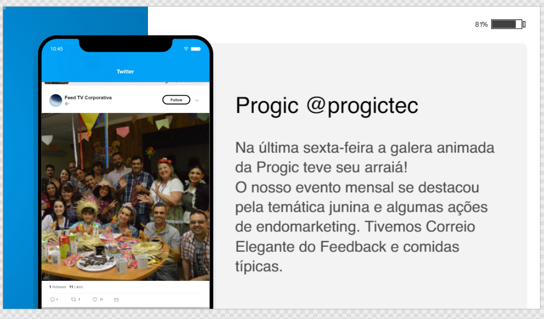 A mídia do Twitter faz parte do pacote de Conteúdos Prontos dentro do Creative disponibilizados no Progic Manager.