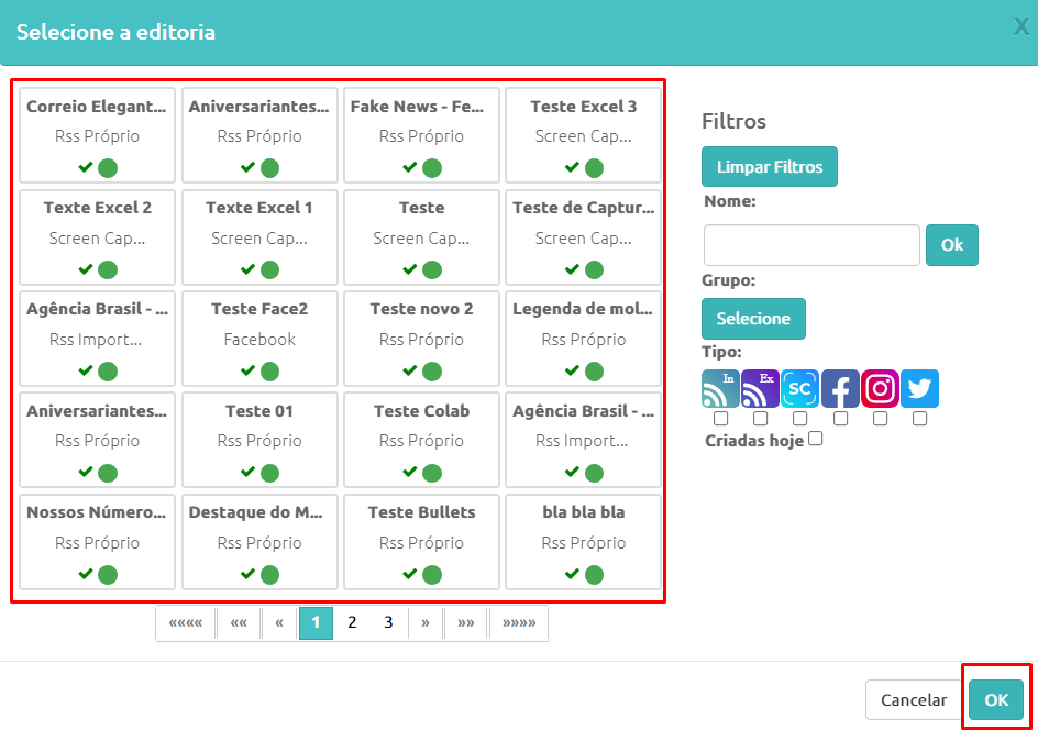 8º –Selecione o RSS criado;