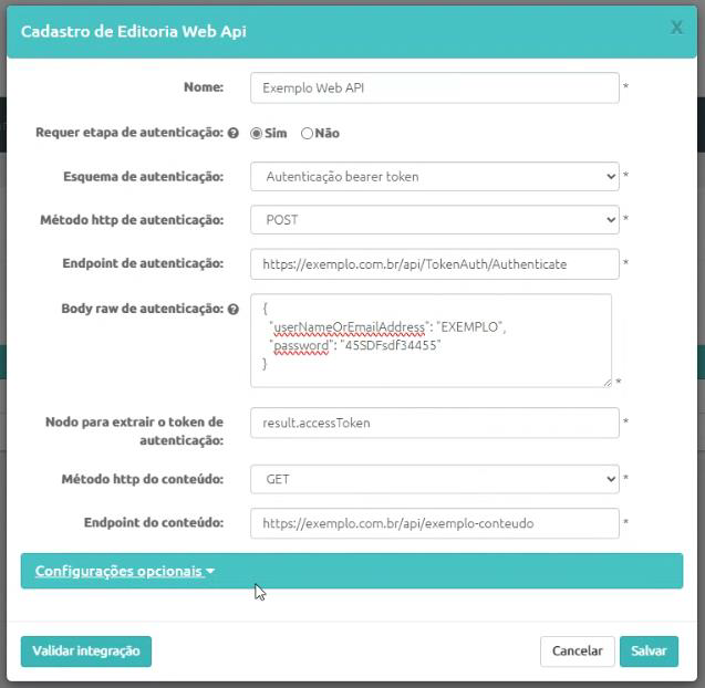 Como utilizar a integração de editoria Web API