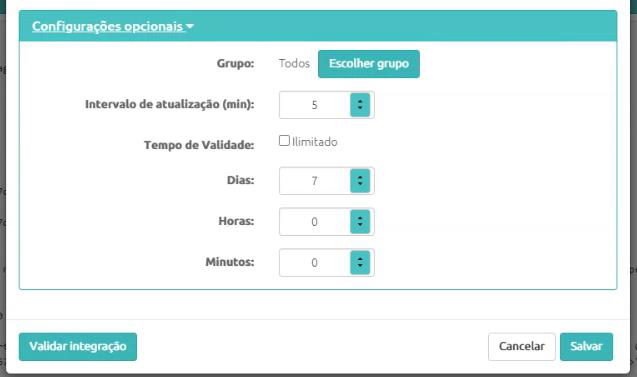 Opção “Validar integração” - Para validar se a integração está funcionando corretamente antes de salvar;