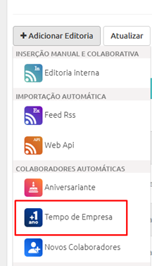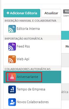 Configuração e utilização das Editorias Automáticas (aniversariantes, tempo de empresa e novos colaboradores)