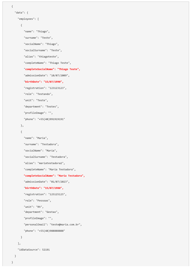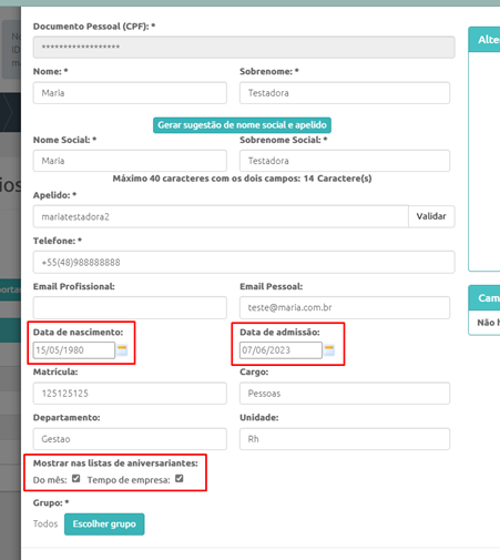 Neste exemplo temos dois colaboradores fazendo Aniversário no mês atual (em destaque no exemplo a seguir):