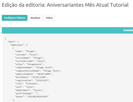 - Semana Atual: A Editoria vai exibir os Funcionários que fazem aniversário de Tempo de Casa somente na Semana Atual.
