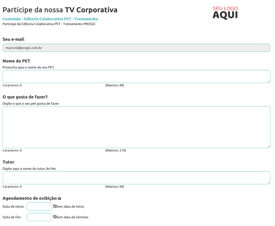 E imagine os colaboradores recebendo, via e-mail, a seguinte tela para enviarem os conteúdos: