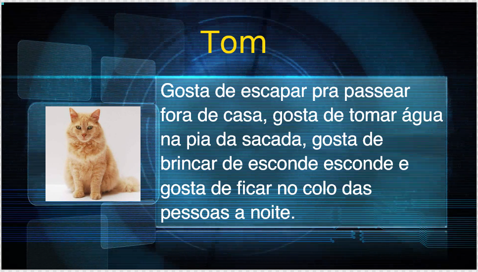 Vamos supor que será feita uma Campanha para os colaboradores mostrarem os seus PETs na TV Corporativa, mostrando seus nomes, com fotos e o que eles gostam de fazer!