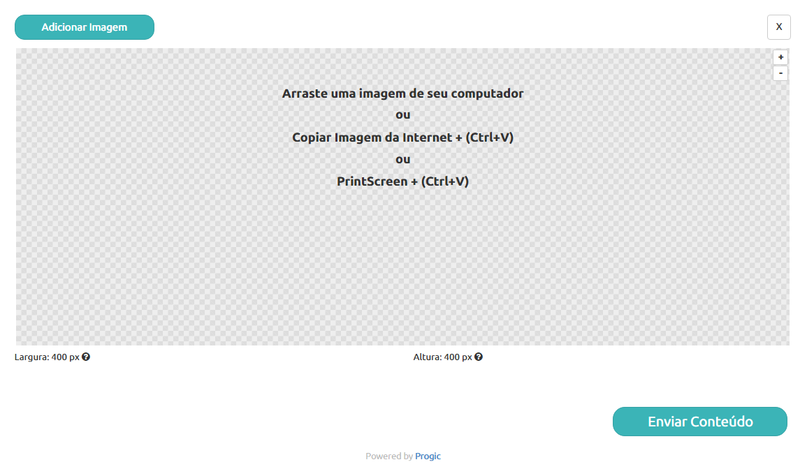 - Nos parâmetros de Largura e Altura você deve configurar o tamanho da imagem que será usada no template, por padrão os campos já vem preenchidos com 400x400 pixels;