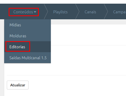 - Acesse o Manager e vá na aba de Conteúdos, na opção Editorias;