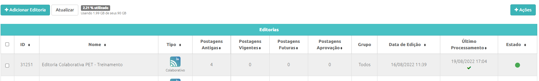 - Para finalizar a criação/configuração da Editoria Colaborativa clique no botão Salvar.