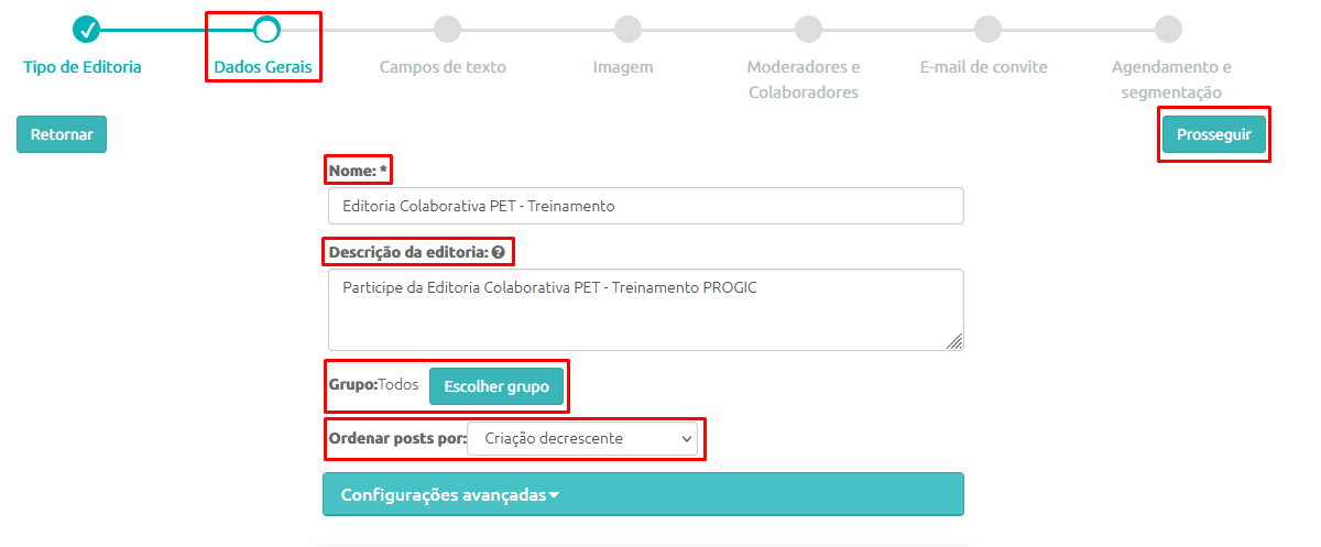 - Para finalizar as configurações dessa etapa é só clicar no botão Prosseguir.