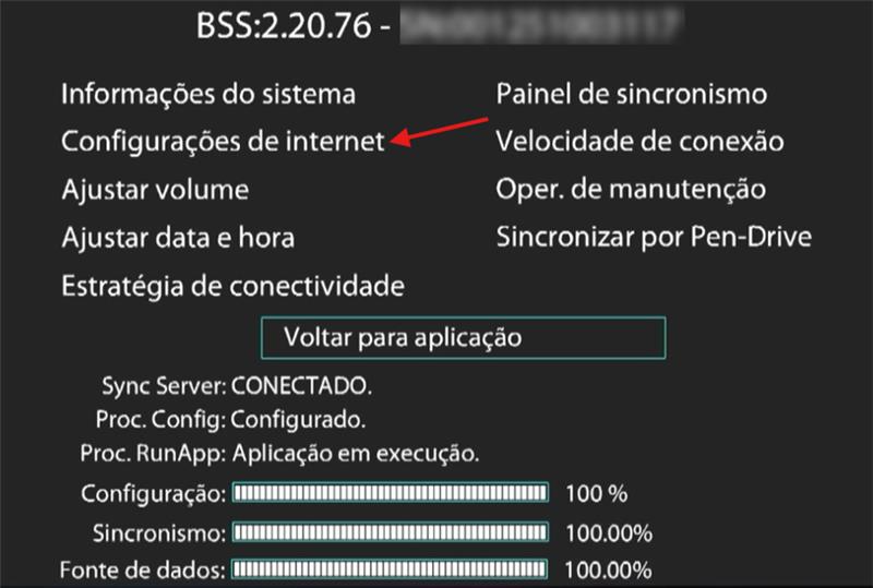 - Na tela de informações, navegue até Configurações de Internet e pressione OK ou Select no controle remoto.