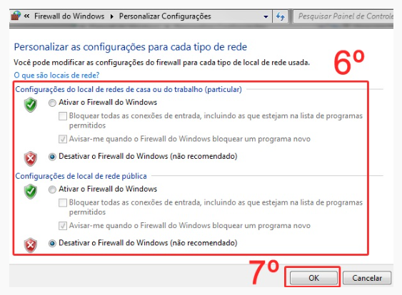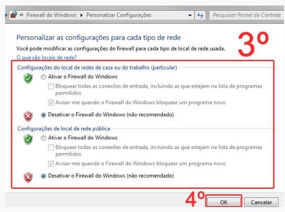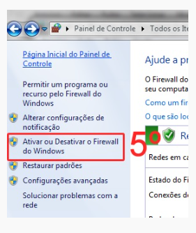 5º – Clique em Ativar ou Desativar Firewall do Windows