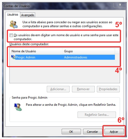 5º – Desative a opção: “Os usuários devem digitar um nome de usuário e uma senha para usar este computador”
