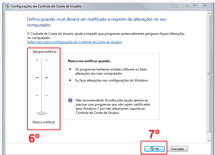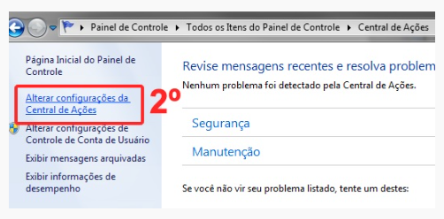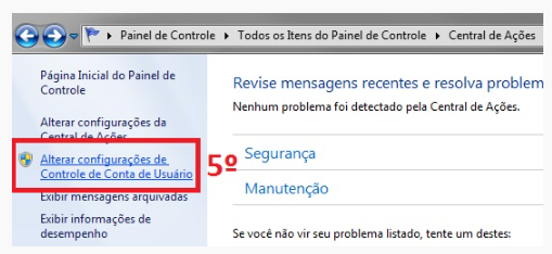 5º – Clique em Alterar configurações de Controle de Conta de Usuário