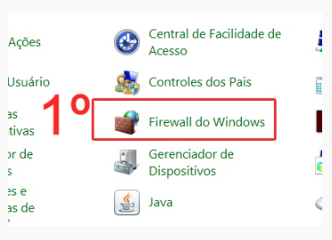 1º – Vá a Painel de Controle – > Firewall do Windows