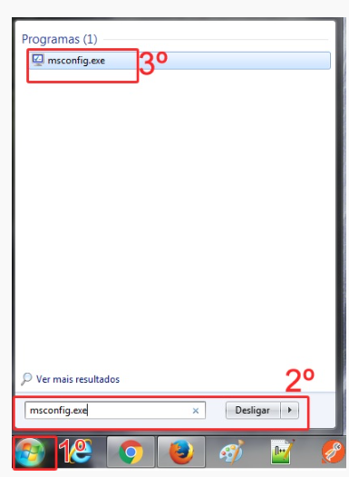 3º – Após digitar, pressione enter ou selecione manualmente o programa msconfig.exe;