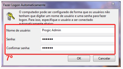 7º – Digite e confirme a senha do usuário selecionado, clique em ok. Se as configurações estiverem corretas o Windows deve logar automaticamente.