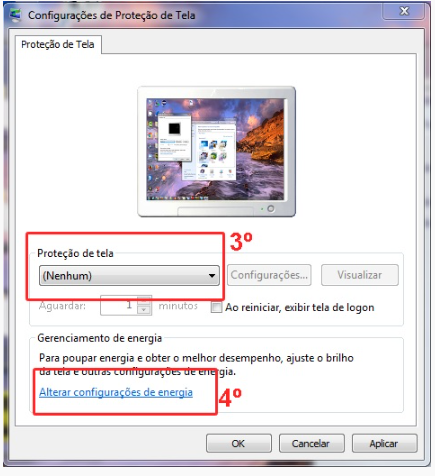 3º – Em proteção de tela selecione a opção “(Nenhum)”