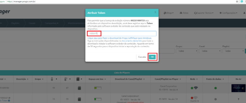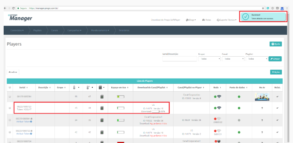 Logo após aguarde ser player ficar online conforme imagem a baixo. Para acompanhar este status você deve clicar em Atualizar.